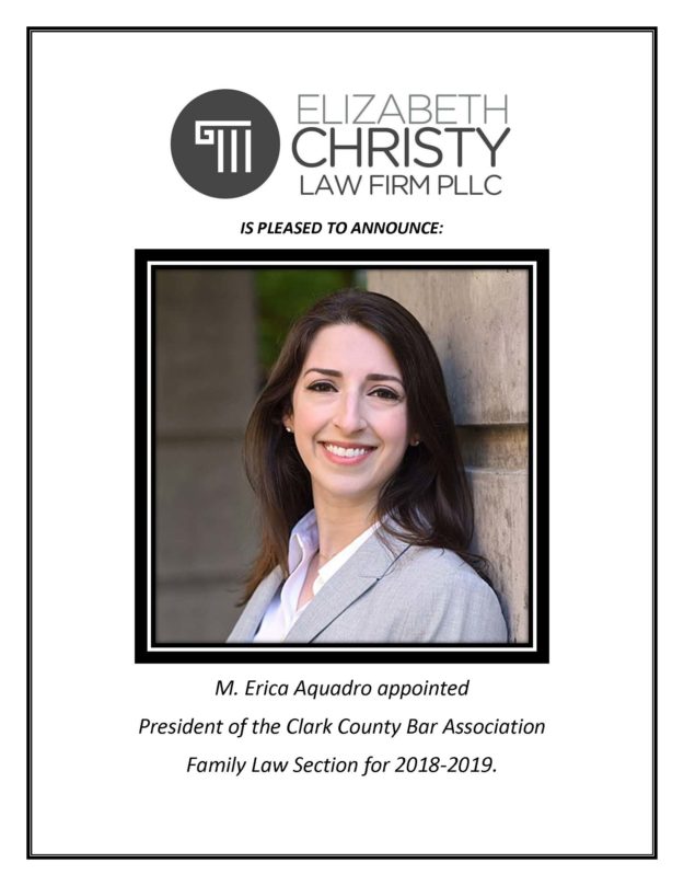 Erica has been appointed President of the Clark County Bar Association Family Law Section for 2018-2019.